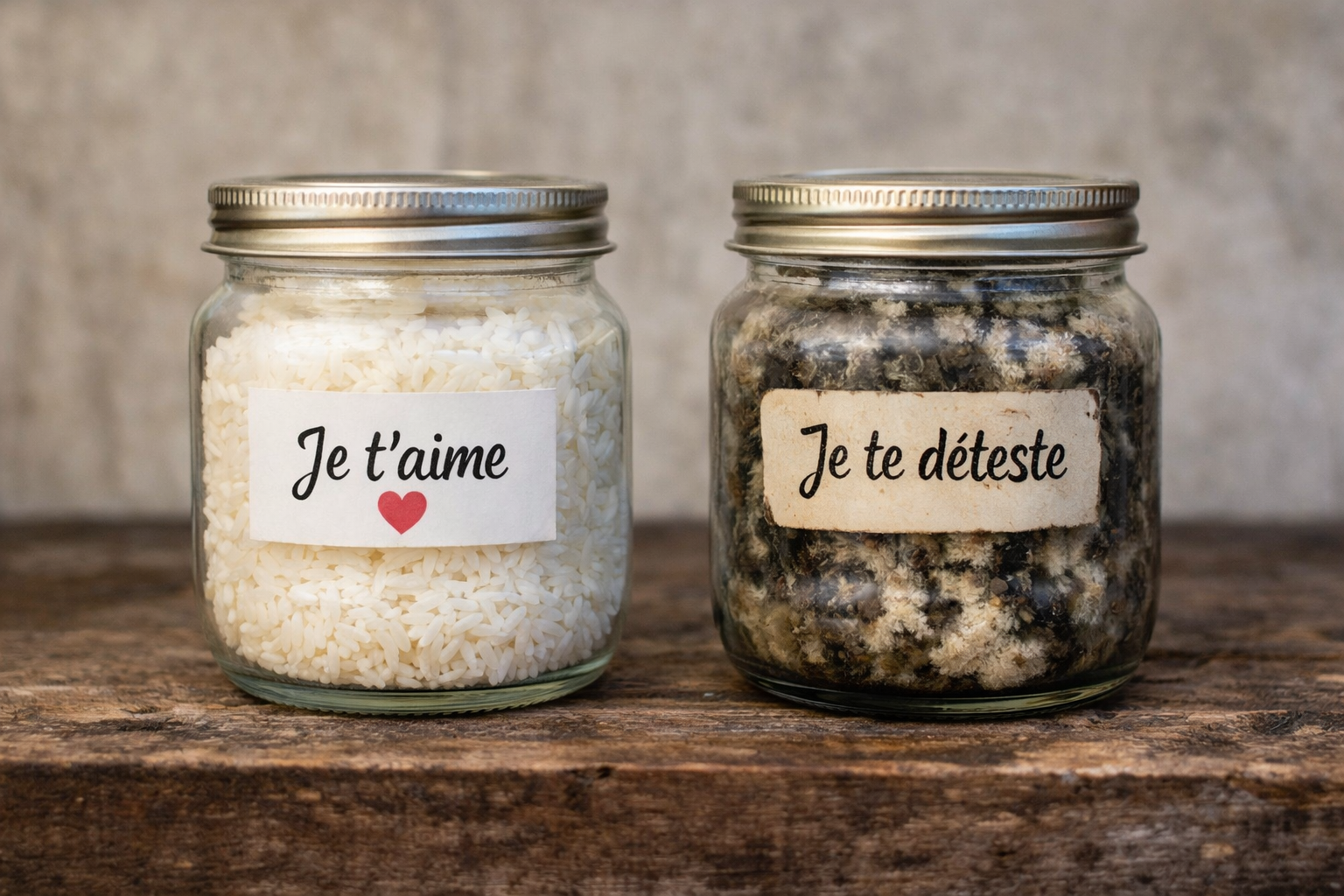 L’expérience est simple. Deux bocaux. Du riz dans chacun d’eux.